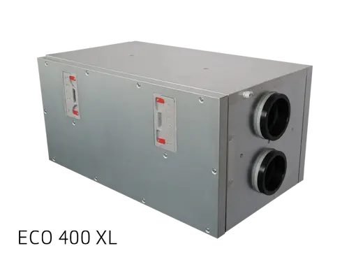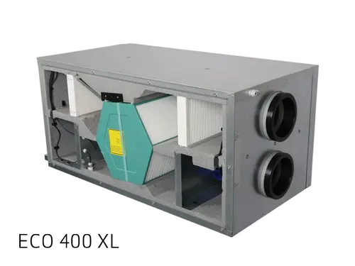 ECO 400 XL fra Genvex er i udgangspunktet tiltænkt væsentligt større boliger. Men netop den ekstra kapacitet betyder, at anlægget kan levere den nødvendige luftmængde til Stigs hus ved lavere ventilatorhastigheder.