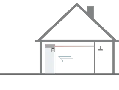 En brugsvandsvarmepumpe trækker varmen ud af den omgivende luft og overfører det til vand, som varmes op. Den består af en effektiv varmepumpe koblet sammen med en højisoleret vandtank. Den varme luft passerer forbi varmepumpens kølemiddel, der befinder sig i et lukket kredsløb.